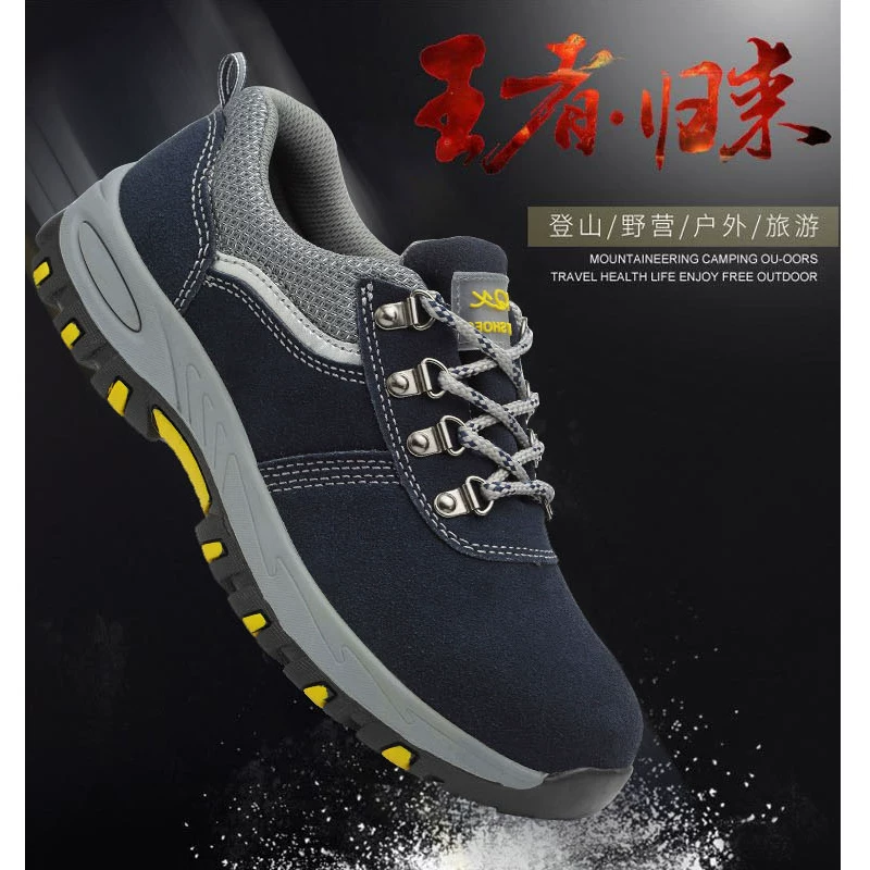 Giày bảo hộ lao động mũi sắt thoáng khí chống đâm thủng chống mài mòn giày lao động da bò dế ngoài cao xu độ bền cao