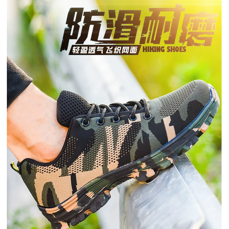 Mùa hè thời trang bay dệt giày bảo vệ thở-piercing chống giày an toàn chống đập nam mặc giản dị ngụy trang thể thao