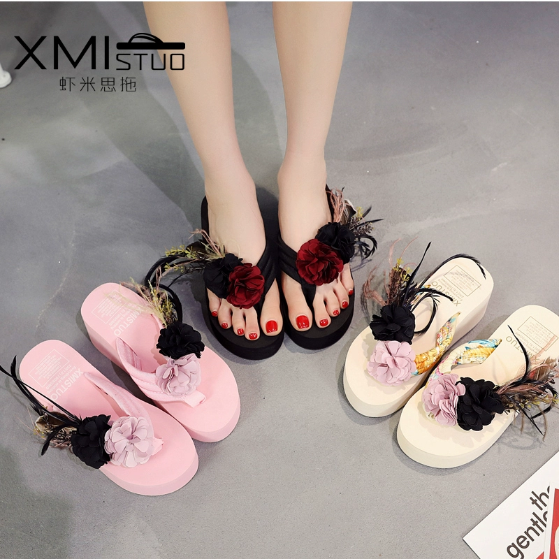 2019 dốc mới với dép nữ mùa hè dép thời trang mặc bên ngoài lớp vỏ dày Muffin bãi biển không trượt dép cao gót