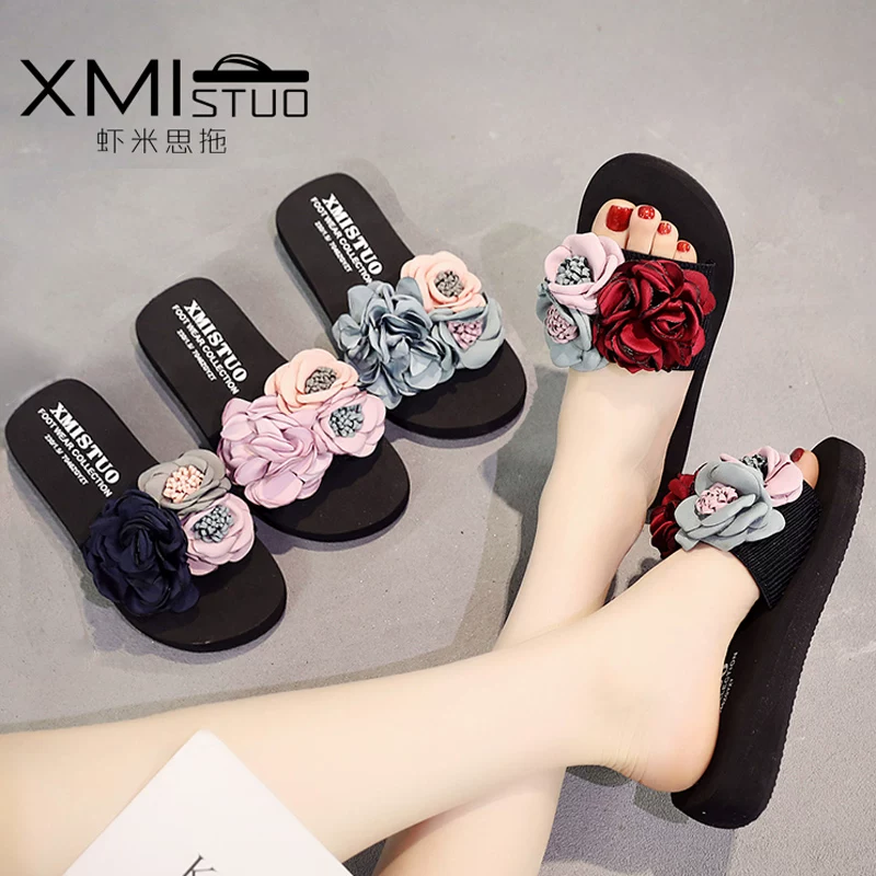 2020 phụ nữ mùa hè mới ngoài dép mòn dốc với không trượt dép cao gót từ kéo ven biển thời trang nặng có đáy