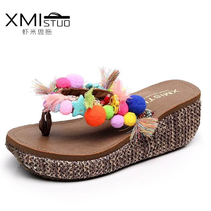 Cá nhân hoá Rafi rơm dép băng nặng đáy giải trí bãi biển dép dép nữ lớp vỏ dày Muffin giày