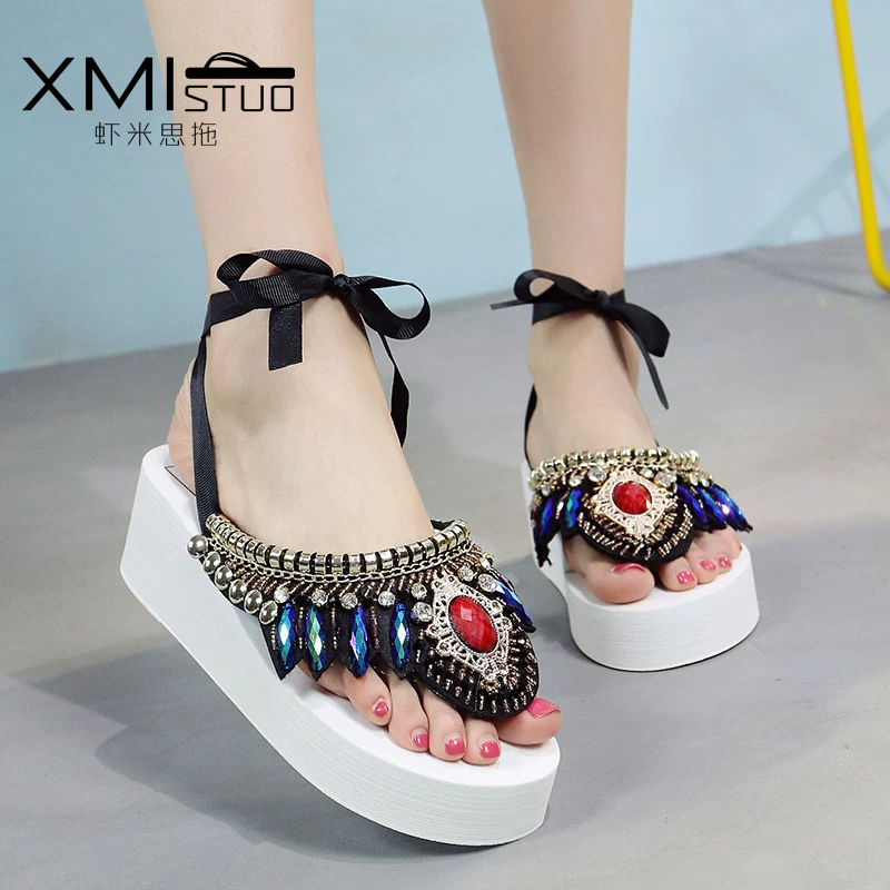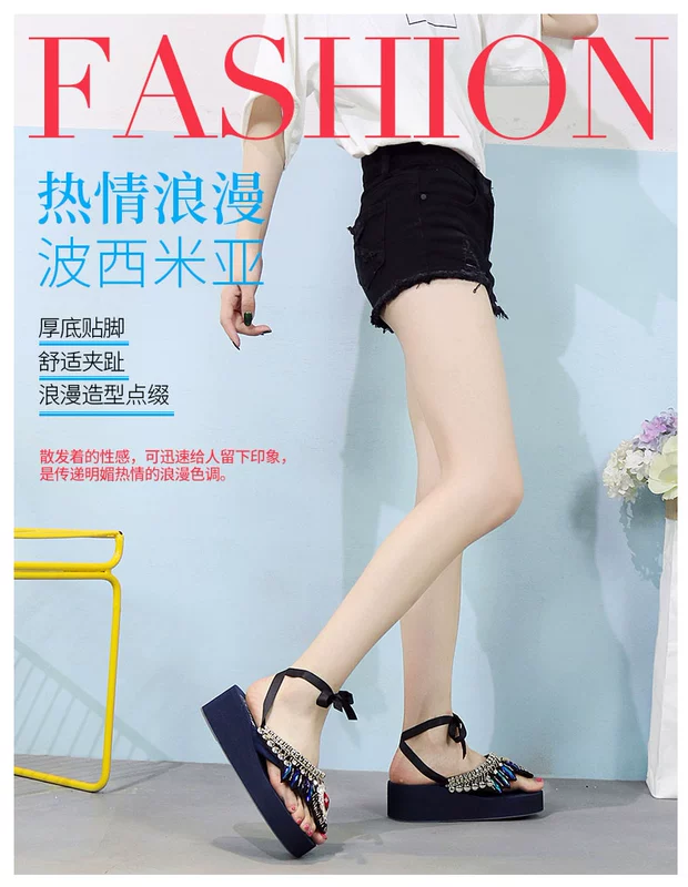 Dép đi trong nhà nữ mùa hè mặc ngoài dốc lớp vỏ dày với dép đi biển cá tính dây đeo nữ kéo bohemian Hollister