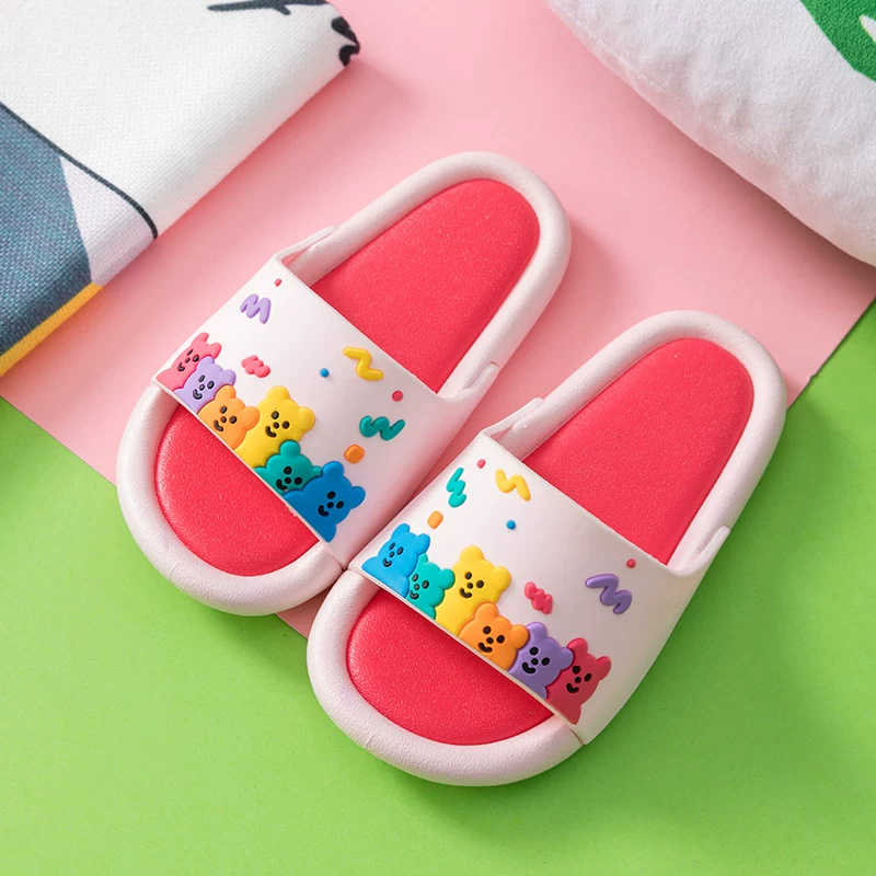 Gấu đầu mặc ngoài nữ mùa hè nhà dép phòng tắm trong nhà trượt nhà mùa hè trẻ em đáng yêu dép và dép đi trong tư cách làm cha nam