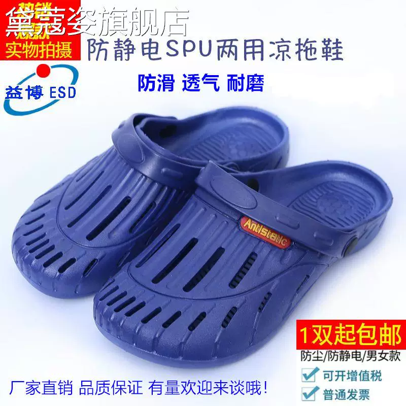 Giày chống tĩnh điện giày dép xăng đan đế mềm thoáng khí giày công sở màu xanh SPU nam và nữ nhà máy xưởng giày giày không bụi giày không trơn trượt