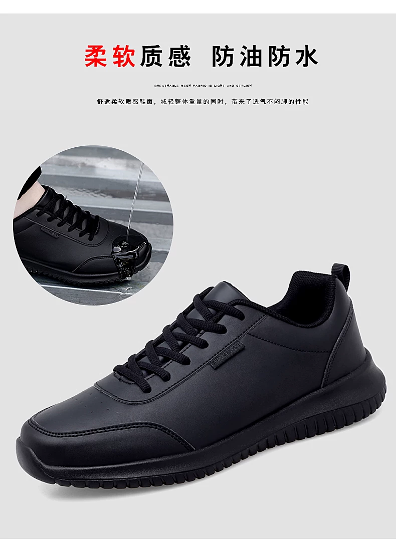 Giày đầu bếp của phụ nữ da đen không thấm nước giày thể thao chống thấm dầu nhà bếp giày làm việc nhà bếp phía sau nhà bếp canteen phục vụ giày chống trượt