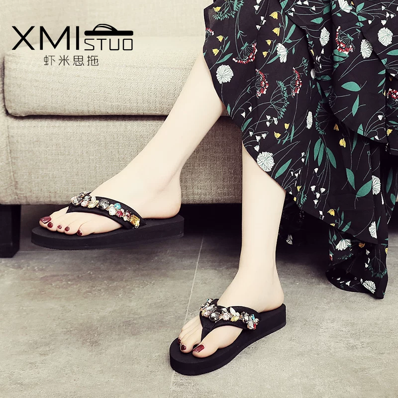 Mới kim cương nữ dép mùa hè dép bãi biển cát và dép nữ ngoài trượt mặc thời trang ra dép phẳng