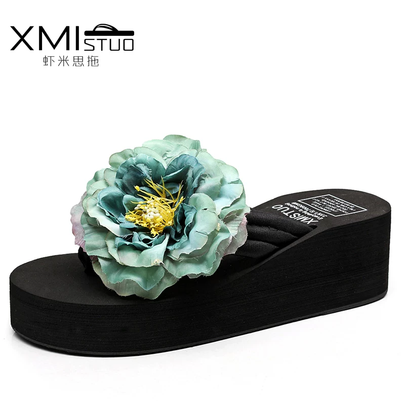 Mùa hè trượt dốc nặng đáy với dép nữ dép Muffin thời trang Hàn Quốc và dép cao gót dép hoa lật
