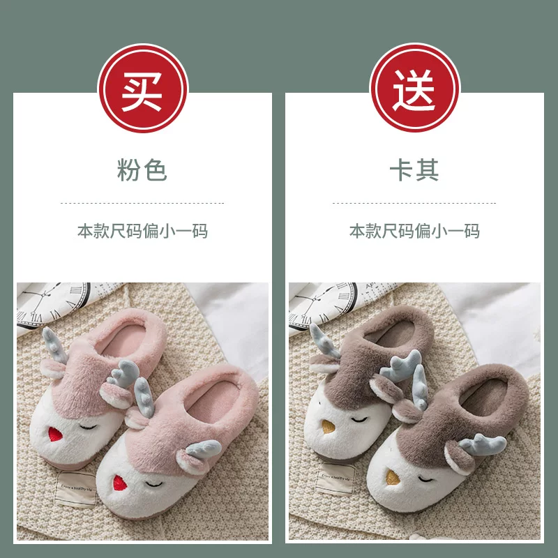 Mua một tặng một phụ nữ dép bông đáng yêu trong nhà mùa thu nhà và tháng mùa đông dép len ấm nam vài nhà