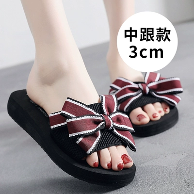 New dép thời trang nơ và dép đi trong nhà từ kéo nặng đáy nữ mùa hè mặc ngoài không trượt dép cao gót Muffin ngọt
