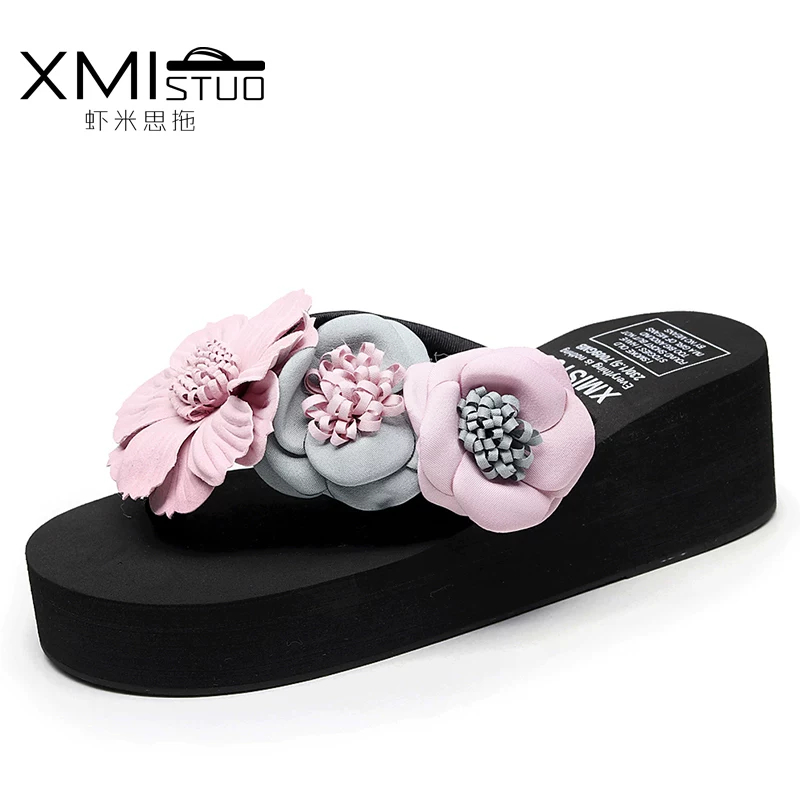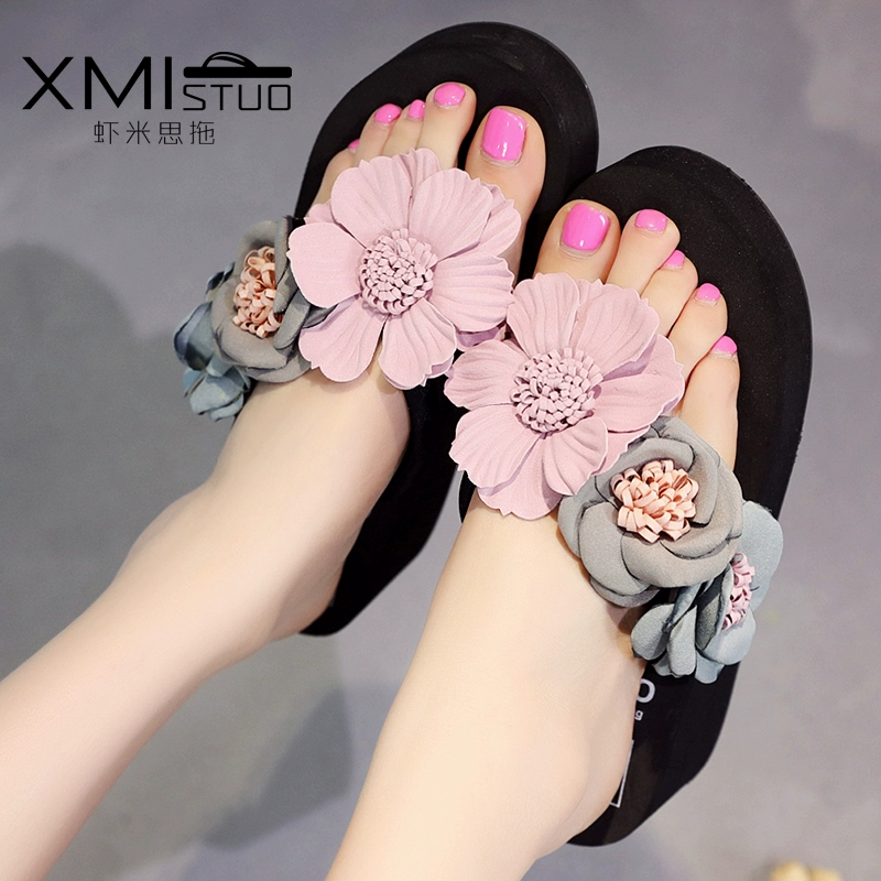 thời trang mới mặc ngoài dép cao gót và dép nữ dép mùa hè dày biên giới biển vỏ sạt lở với dép dép