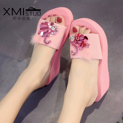 thiên nga sequined tăng dép Muffin nặng có đáy mới không trượt dép từ mùa hè nữ thời trang mặc ngoài cao gót