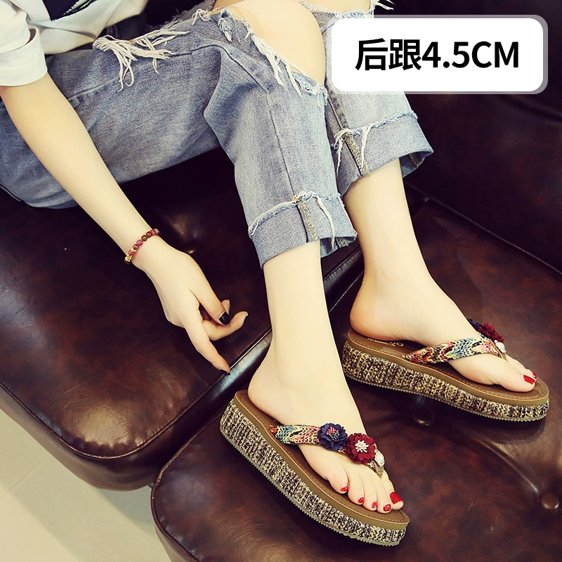 2020 thời trang mới bên ngoài mặc nữ mùa hè dép bãi biển bãi biển lật dốc với lớp vỏ dày dép cao gót dép nữ
