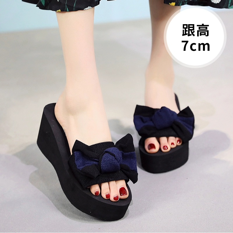 Lời bãi lớn mặc ngoài dép chống trượt nữ mùa hè dép handmade dép giản dị phẳng dép nơ Hàn Quốc