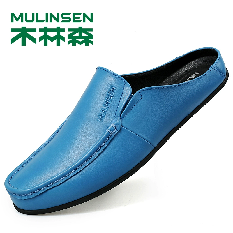 Mulinsen lười nửa dép nam giày da nam đầu bếp không bàn đạp Baotou cộng với giày kéo bông nhung